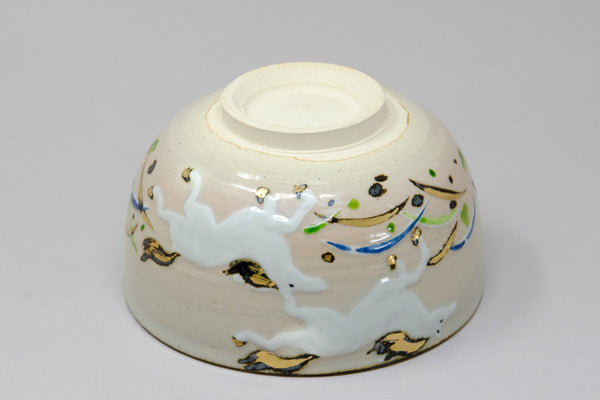 野山を駆ける二頭の馬が描かれたおめでたい茶盌です。